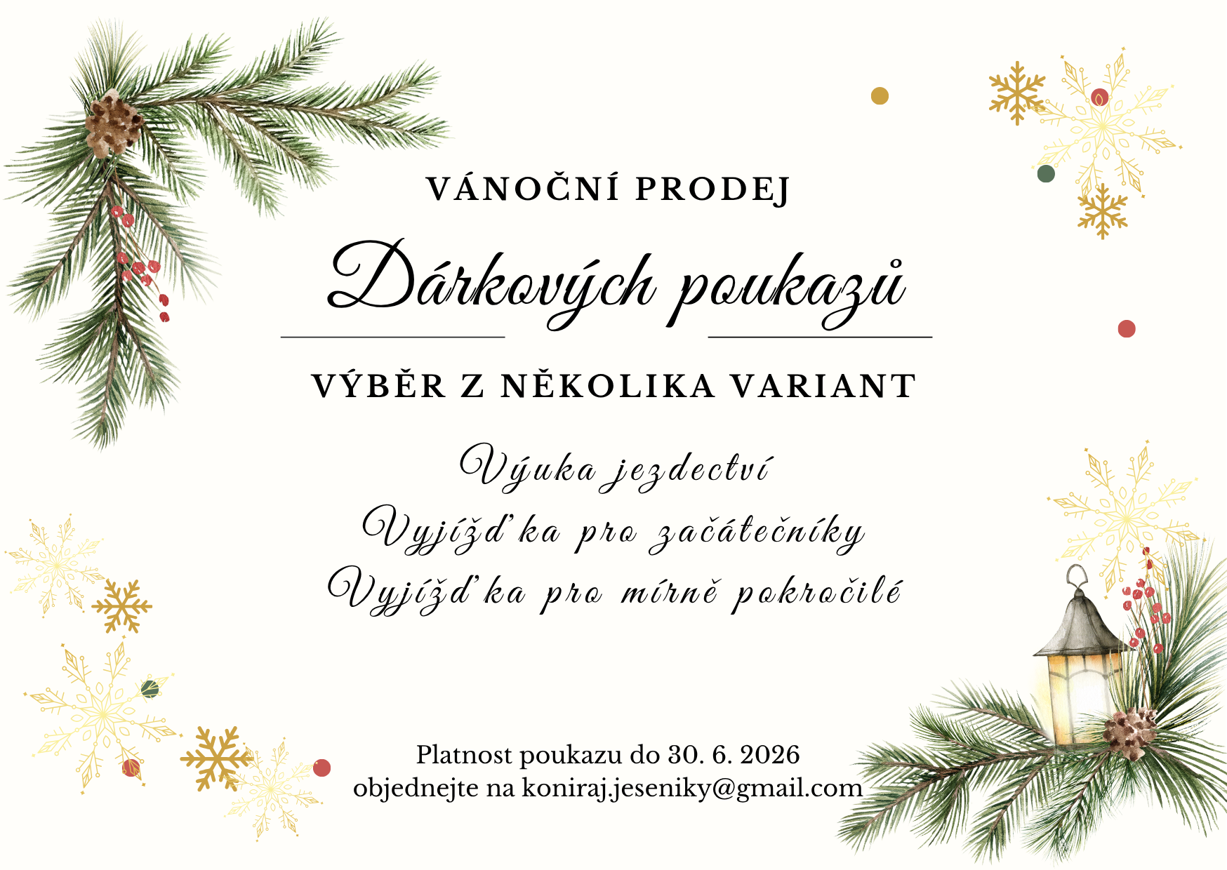 Nabízíme dárkové poukazy na přání. Výuka, vyjížďka, vodění dětí na koních, Jarní výukový blok pro děti, atd...