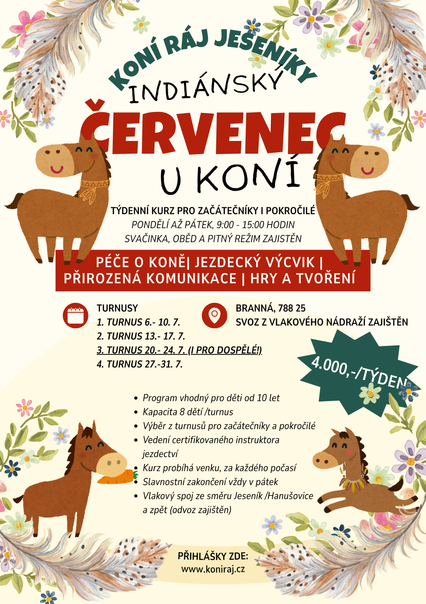 Z důvodu Vašich žádostí je 3. TURNUS OTEVŘENÝ I PRO DOSPĚLÉ JEZDCE! VYUŽIJTE MOŽNOST STRÁVIT S VAŠIMI DĚTMI AKTIVNÍ DOVOLENOU :)